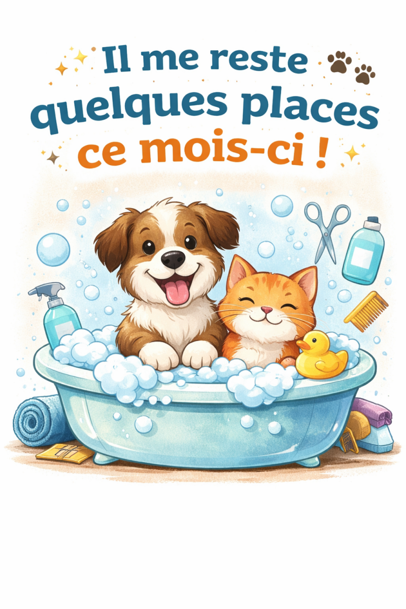 Il me reste quelques disponibilités ce mois ci pour toiletter vos petits compagnons, que ce soit chez vous ou à mon domicile.